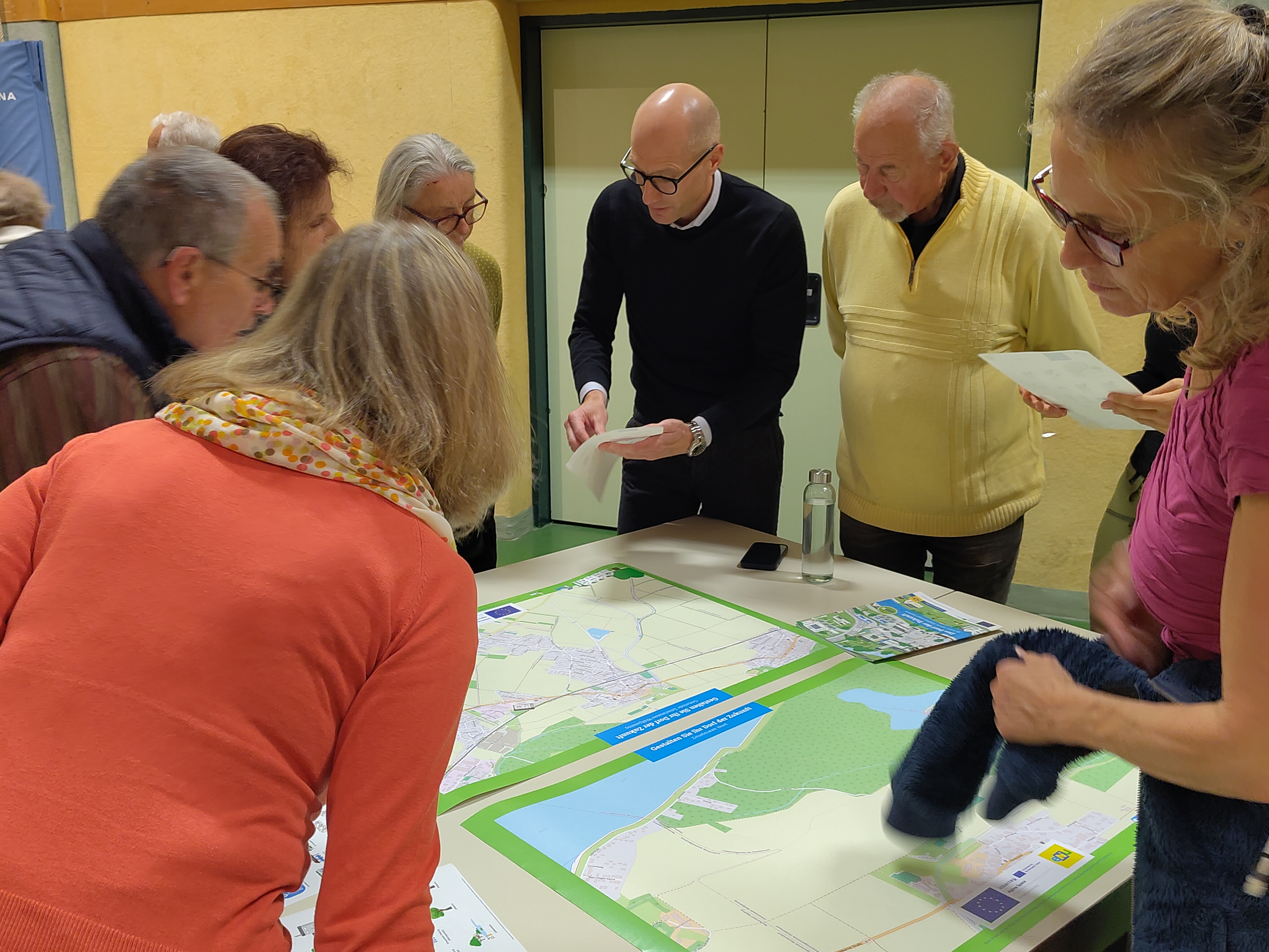 In einem Workshop entwarfen Bürgerinnen und Bürger Visionen, wie das "Dorf der Zukunft" klimafit, lebenswert und zukunftsorientiert gestaltet werden kann.