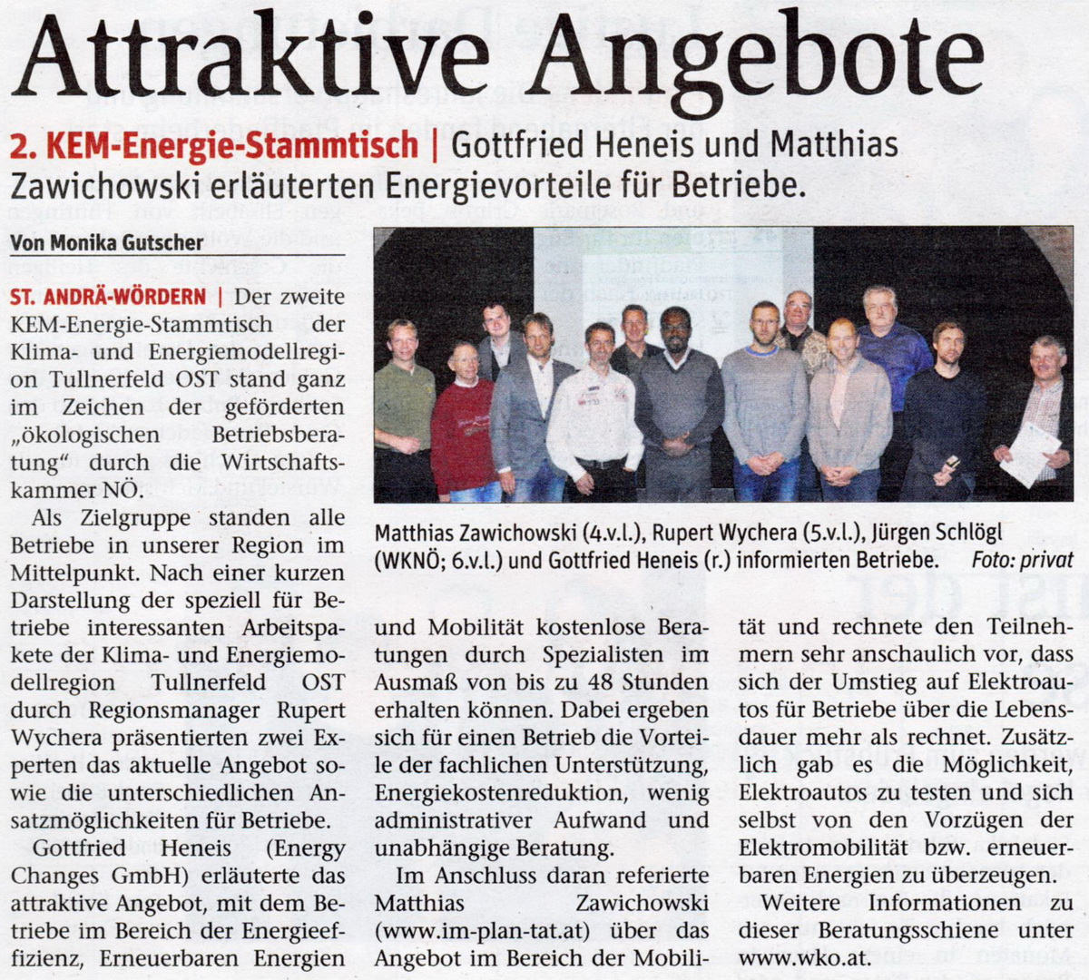 Der zweite KEM-Energie-Stammtisch stand ganz im Zeichen der geförderten Betriebsberatung durch die Wirtschaftskammer NÖ.