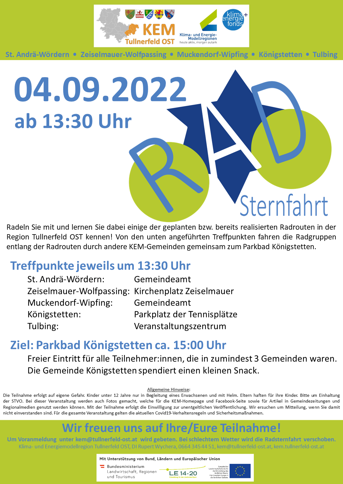 Zum bereits dritten Mal organisierte die KEM Tullnerfeld OST eine Radsternfahrt quer durch die schöne Region Tullnerfeld OST.